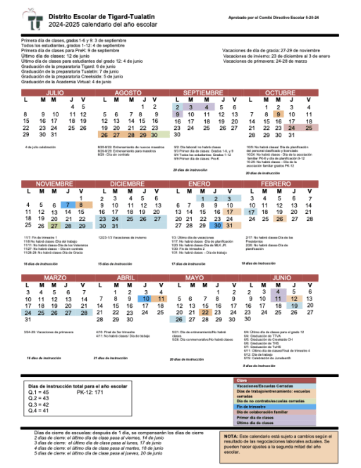 2024 25 Yearly Calendar Tigard Tualatin School District 23J